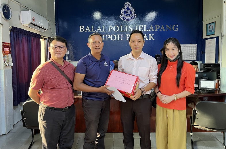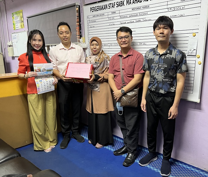 新春拜访 2024年2月3日发布 趁着农历新年的到来,本校朱荣熙副校长日前偕同联课活动主任刘誌中老师、助理王慧玲老师和宣教处助理李宇铤先生前往九洞警察局、九洞再也国中(SMK JELAPANG JAYA)和 SABK MA’AHAD AL-IMAM ASY-SYAFIEE 宗教学校拜访,把新春祝福送给友族同胞,共庆佳节。 感谢校友赠送冷冻大虾给本校全体教职员