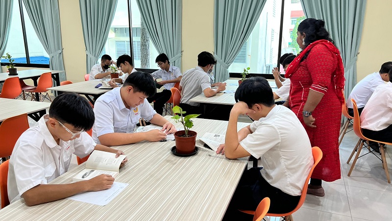 本校英文组老师安排学生到图书馆 阅读英文书籍、书写阅读报告 2024年1月15日发布 随着李莱生图书馆已开放使用,本校英文组的老师安排各班级的同学们到图书馆阅读英文书籍并书写阅读报告,以加强同学们在阅读和书写英文词句方面的能力。 拉曼理工大学到访交流及推广东钢人才培育计划