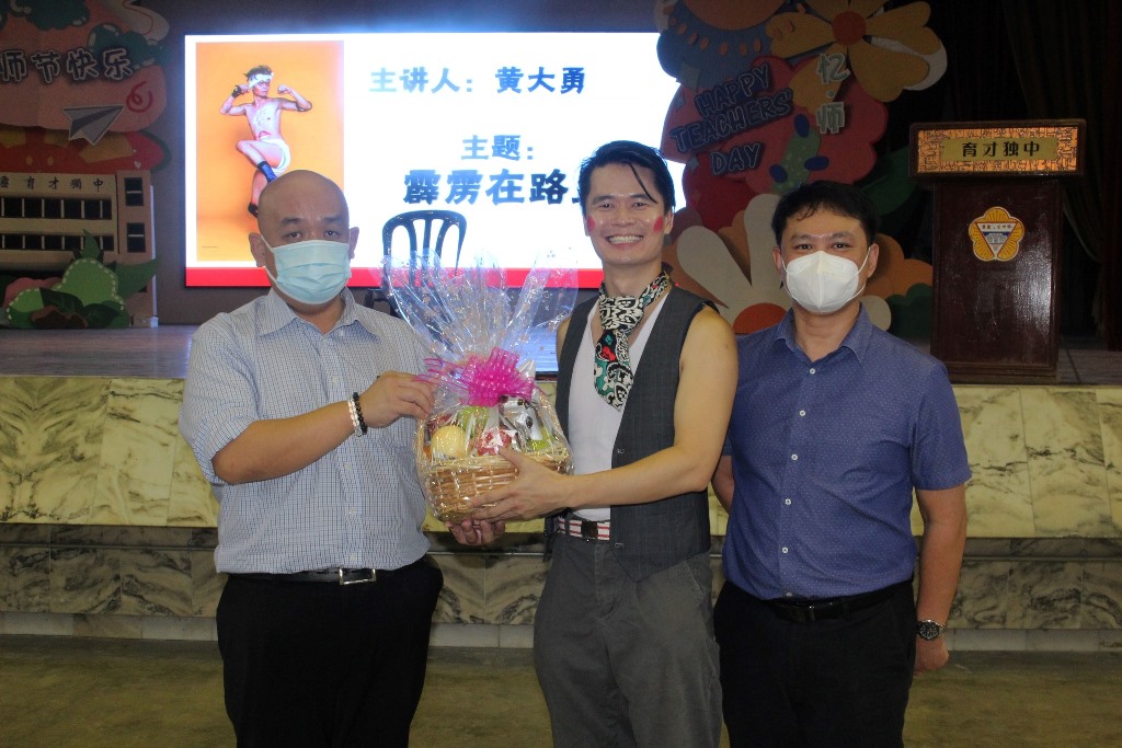 黄大勇校友回校分享 2022年8月6日发布 本校2003年高三文美班毕业校友,也是禾作社剧团创办人黄大勇,日前返回母校给高二的学生主讲一场讲座。 黄大勇校友分享道,在追求梦想的道路上,跌倒是人生中的常态,除了自己在面对一切阻碍或困境时必须对梦想有所坚持,也非常感谢身边的贵人扶一把,才能让梦想实现。 趁着返乡的时间,他到母校与学弟学妹分享自己在戏剧表演道路上的追梦历程。他是一名在台湾剧场表演的艺术工作者,早年毕业于台湾中国文化大学戏剧学系,主修导演和表演,现于基隆崇右影艺科技大学担任表演讲师。 在台湾这十年间,他参与过无数的剧场作品,也曾只身远赴意大利学习面具与小丑表演,在台湾红鼻子关怀小丑协会担任了六年的红鼻子医生演员的工作。 数年前,他在台湾成立了禾作社剧团,致力透过不同形式的跨界互动中,展现出看似平凡的生活题材,其实处处是艺术。